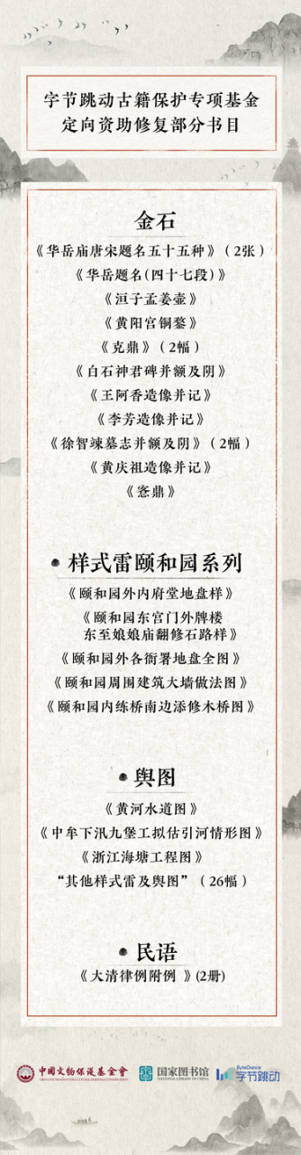 近期,中国文物保护基金会联合国家图书馆开展的古籍保护公益项目取得新的进展。在中国文物保护基金会字节跳动古籍保护专项基金支持下,该项目已完成定向修复古籍50册(件),包括样式雷图档、舆图等。据项目负责人介绍,古籍保护专项基金于2021年6月启动,首批投入资金 1000 万元,开展定向修复古籍100余册(件)以及相关公益项目。