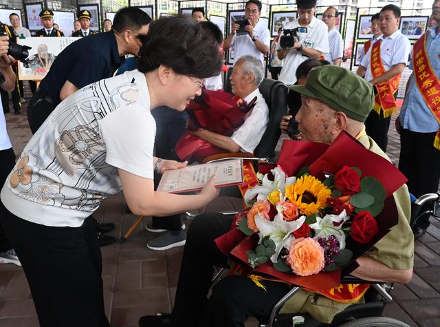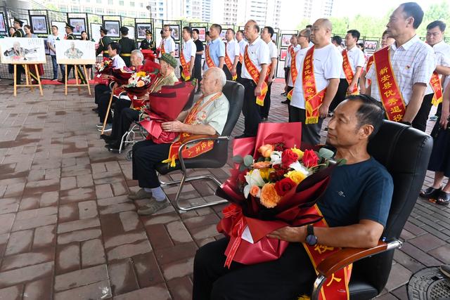 身着浅绿色的短袖,胸前缀满奖章,在女儿的搀扶下,老人来到自己的画像前,和自己“面对面”久久凝望,目光中透着欣悦、自豪和激动。7月28日上午,洛阳市新安县在县体育场举办“退伍不褪色 出彩新时代”-----新安县庆祝建军95周年“优秀退役军人”事迹展,老人的神情感染了现场的每一个人,也成为整个活动中最抢眼的一幕。