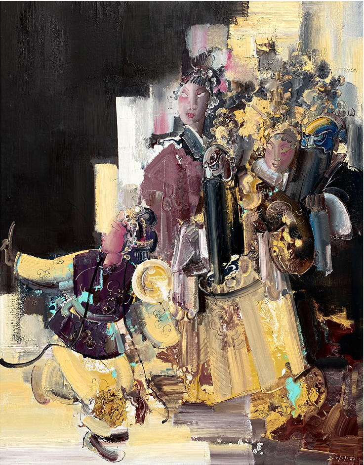 中国戏曲是中国传统文化的重要组成部分,穿越古今,形神兼备;油画源于西方,色彩丰富立体。当中国戏曲的“角儿”遇上西方油画的“色儿”,会发生怎样的反应?如今,它们统一在中国美术家协会会员、广东技术师范大学美术学院美术学系主任彭小杭的作品里。1998年以来,彭小杭以中国戏曲为创作主题,用油画表现东方艺魂,开启了一场绘画与戏曲表演艺术的跨时空对话。
