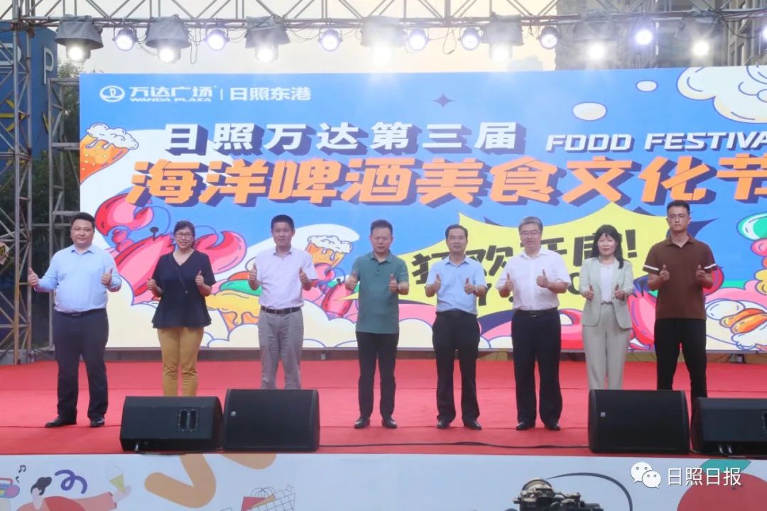 随着与会领导再次登台,共同在大屏幕前共同按下手印,标志着2022日照万达第三届海洋啤酒美食文化节正式启幕,现场气氛达到高潮。
