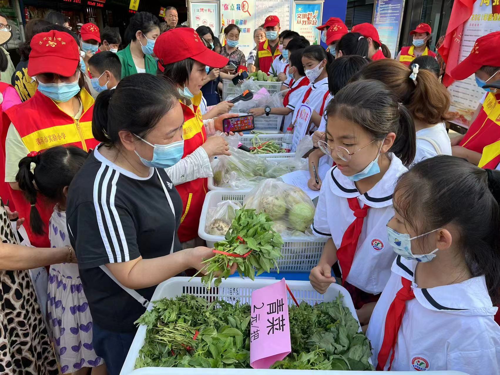 “卖菜了,卖菜了,绿色种植,纯天然无公害,吃着香,营养价值高,大家快来买我们的放心菜吧!”7月29日下午,在漯河市区沟张菜市场,由漯河市实验小学组织的“暑期采摘、义卖劳动实践活动”现场,孩子们一边给市民介绍蔬菜品种,一边忙着称重、收钱,现场气氛十分热烈。