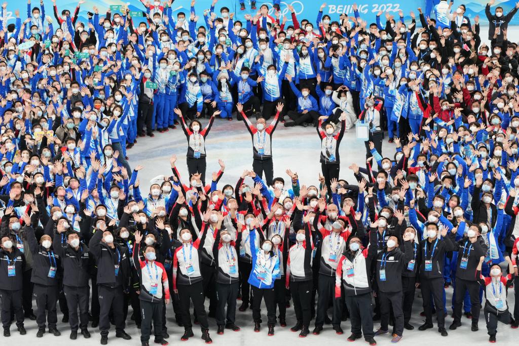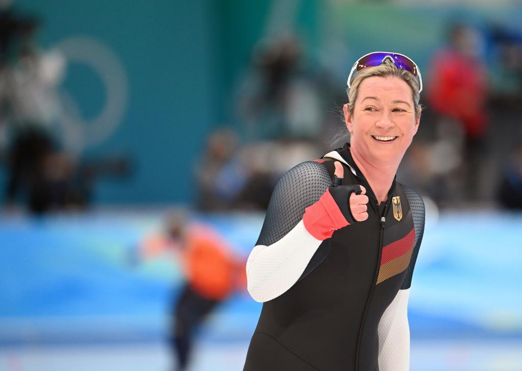 德国选手佩希施泰因在北京2022年冬奥会速度滑冰比赛后