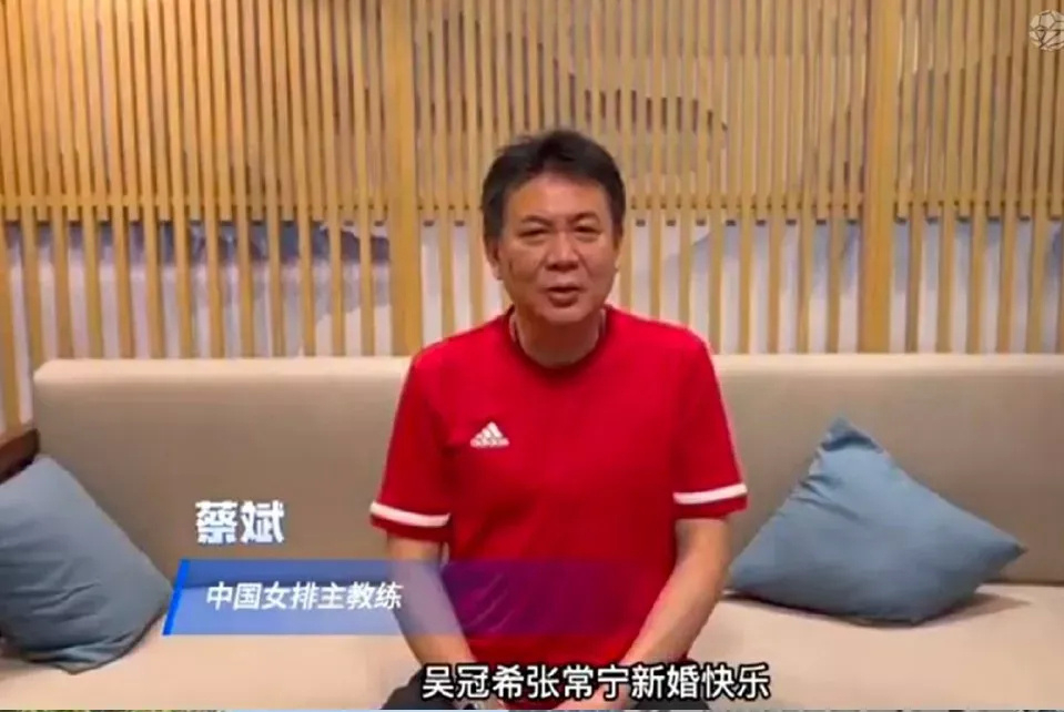 最后,她以录制视频的形式向张常宁送上祝福。视频中,郎平对无法出席婚礼表达了遗憾,而且还谈到了张常宁在19岁时进入国家队后,整体实力进步有目共睹。视频的最后,郎平祝愿张常宁和自己的亲密爱人能够白头偕老、相亲相爱。而与郎平相比,中国女排现任主教练蔡斌的视频祝福,让很多球迷哭笑不得。视频中,蔡斌表示,希望张常宁和吴冠希百年好合、新婚快乐。
