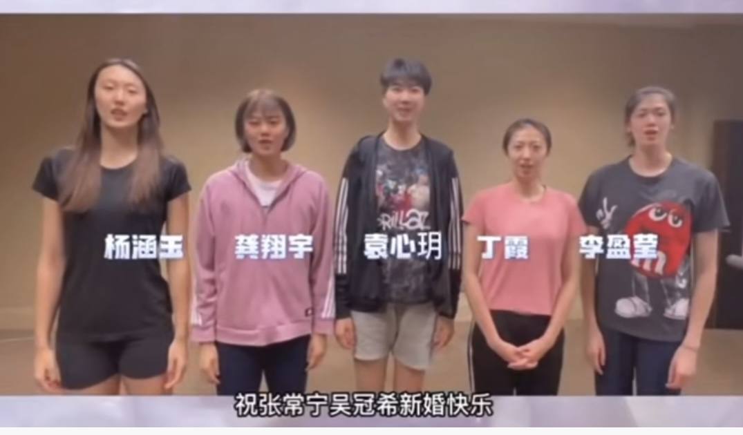 日前,中国女排奥运冠军张常宁和江苏男篮名将吴冠希在浙江杭州顺利完婚。前中国女排主力魏秋月、惠若琪、杨珺菁等队友集体赶到到场,为张常宁送上新婚祝福。不过,由于多种因素影响,依然有很多国内排坛著名教练和球员无法赶到现场,只能通过录制视频的方式,对张常宁夫妇表达祝福。主要包括前国家队主教练郎平、现任主帅蔡斌、国家女排保障团队以及袁心玥、颜妮、李盈莹、龚翔宇、刁琳宇、郑益昕、倪非凡以及王梦洁等。