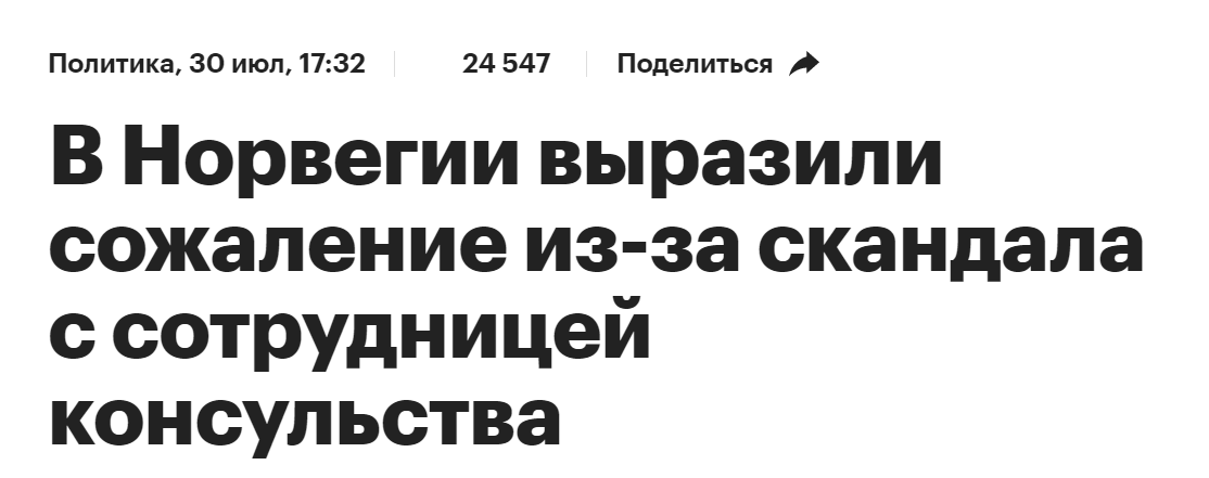 《俄罗斯商业咨询日报》30日援引俄“Mash”新闻网站消息报道,挪威驻俄罗斯摩尔曼斯克领事馆工作人员艾琳森是在摩尔曼斯克一家酒店前台和工作人员起争执的情况下发表了反俄言论。