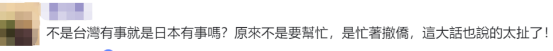 还有网友说:不是“台湾有事就是日本有事”吗?原来不是要帮忙,是忙着撤侨,这大话也说得太扯了!