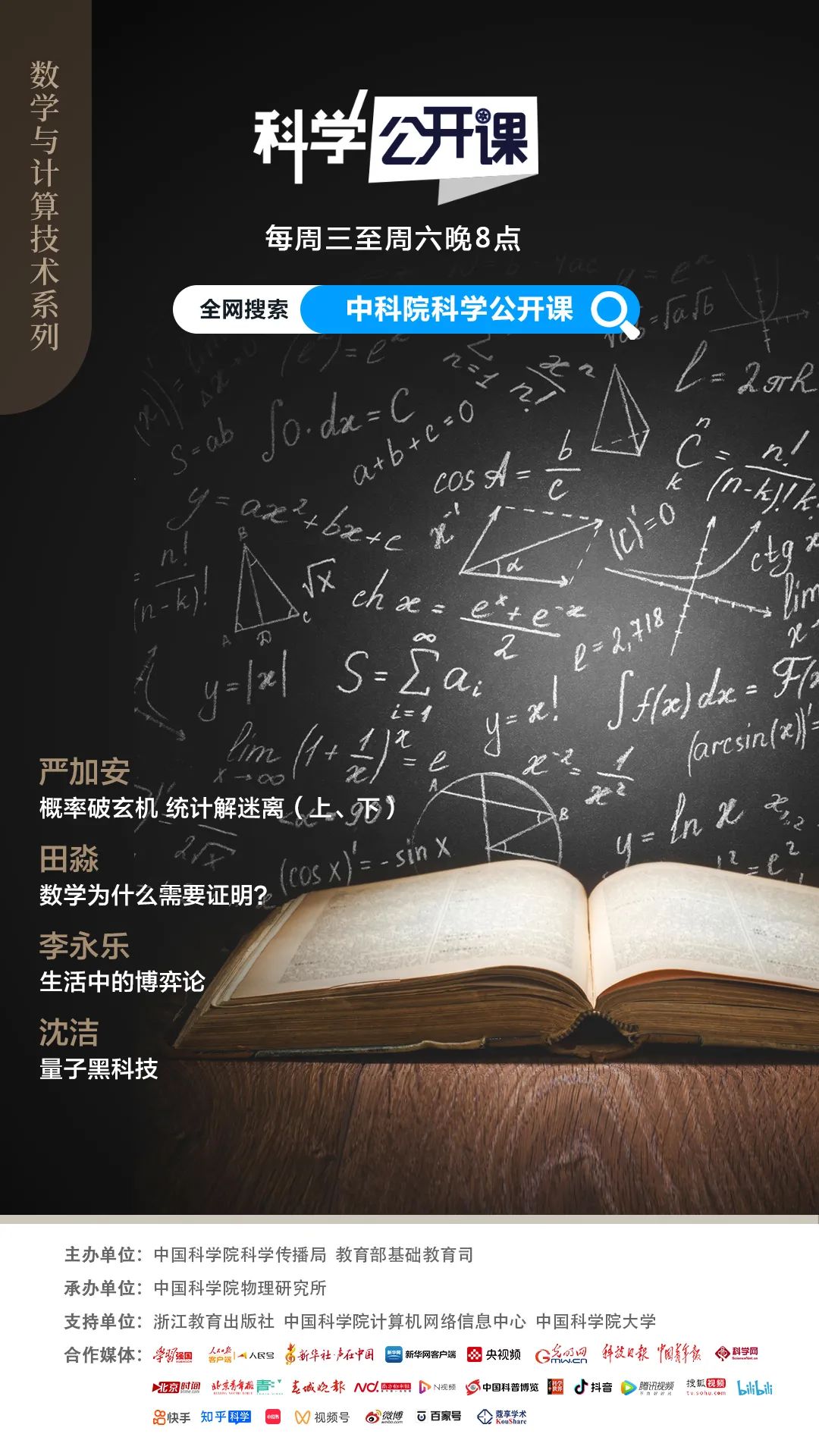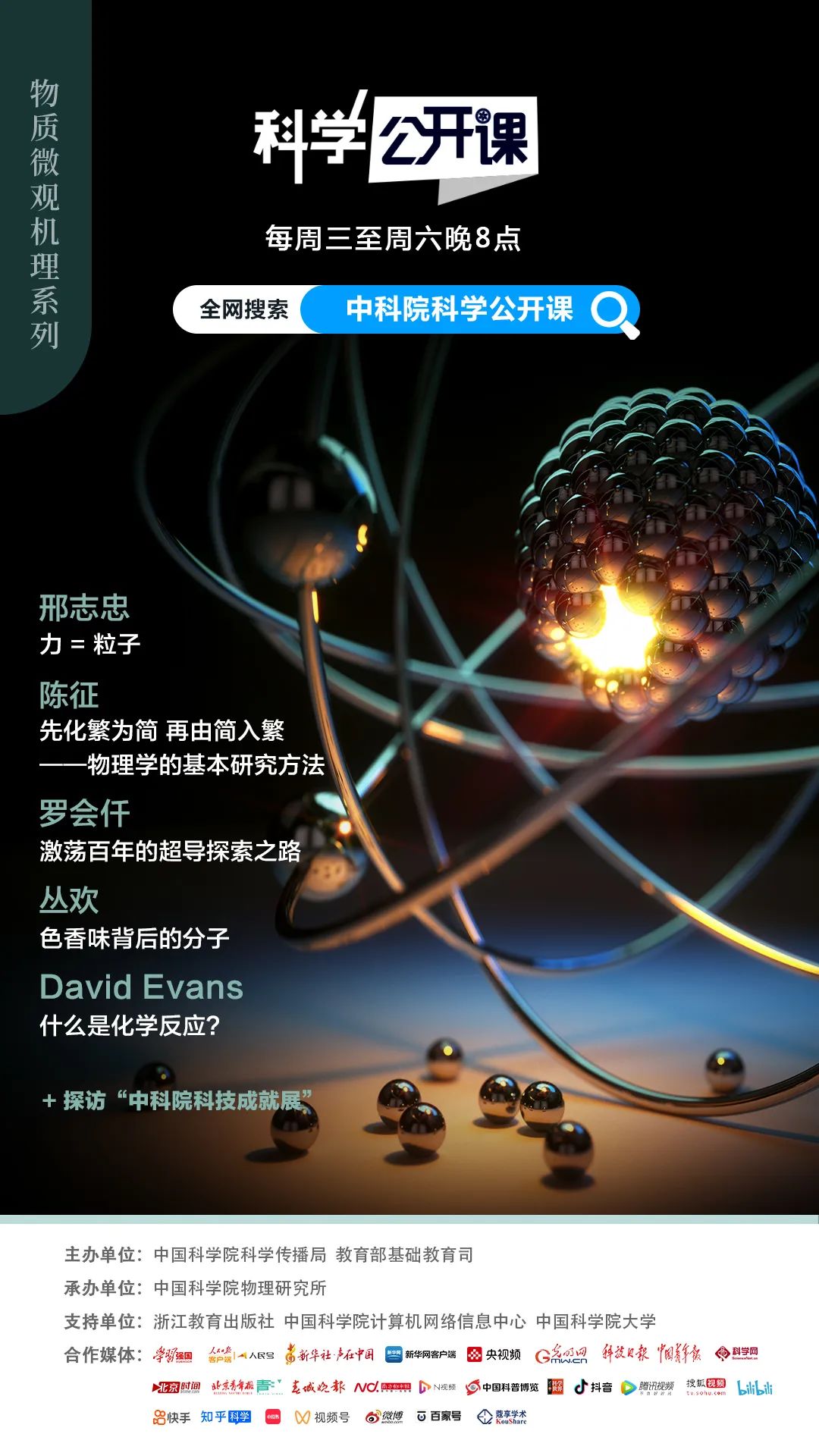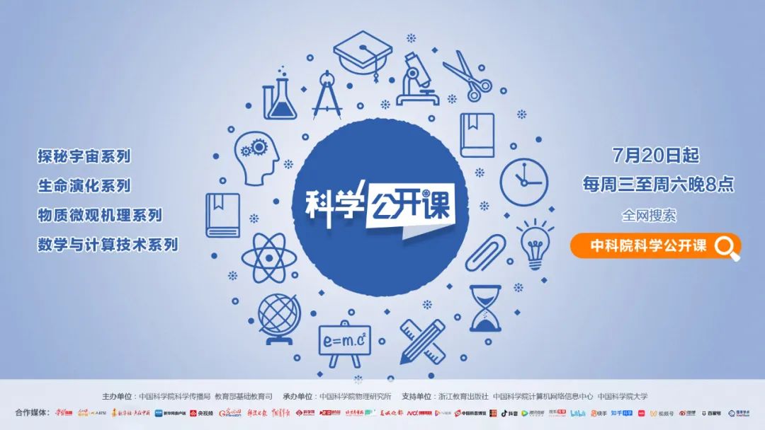 除上述合作媒体外,您还可以在中国科学院大学、国家天文台、中科院高能所、神计妙算、中科院地质地球所、我们的空间站、DeepTech 等账号以及科普中国、今日头条、西瓜视频、钉钉、科研云、花漾搜索等平台同步收看《科学公开课》(第二季)的直播与回放。
