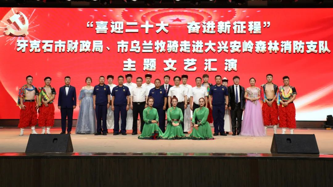 激情似火吹响奋斗号角,盛世欢歌激发前进动力。内蒙古大兴安岭森林消防支队于7月29日隆重举办“喜迎二十大,奋进新征程”文艺演出暨牙克石市财政局、市乌兰牧骑文工团走进大兴安岭森林消防支队文艺汇演。此次文艺汇演是支队开展“书香兴安”集中读书学习活动的又一重要举措,也是丰富全体人员文化生活,提升支队文化建设水平的有效抓手。支队郑威政委、张艳明支队长及牙克石市财政局领导现场观看演出,支队在家党委成员、全体机关干部、驻牙单位消防救援人员共同参加。