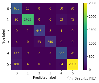 predictions = model.predict(x_test)predictions = np.argmax(predictions, axis=1)y_test_pred = np.argmax(y_test, axis=1)cm = confusion_matrix(y_test_pred, predictions)cm_disp = ConfusionMatrixDisplay(confusion_matrix= cm)cm_disp.plot()plt.show()