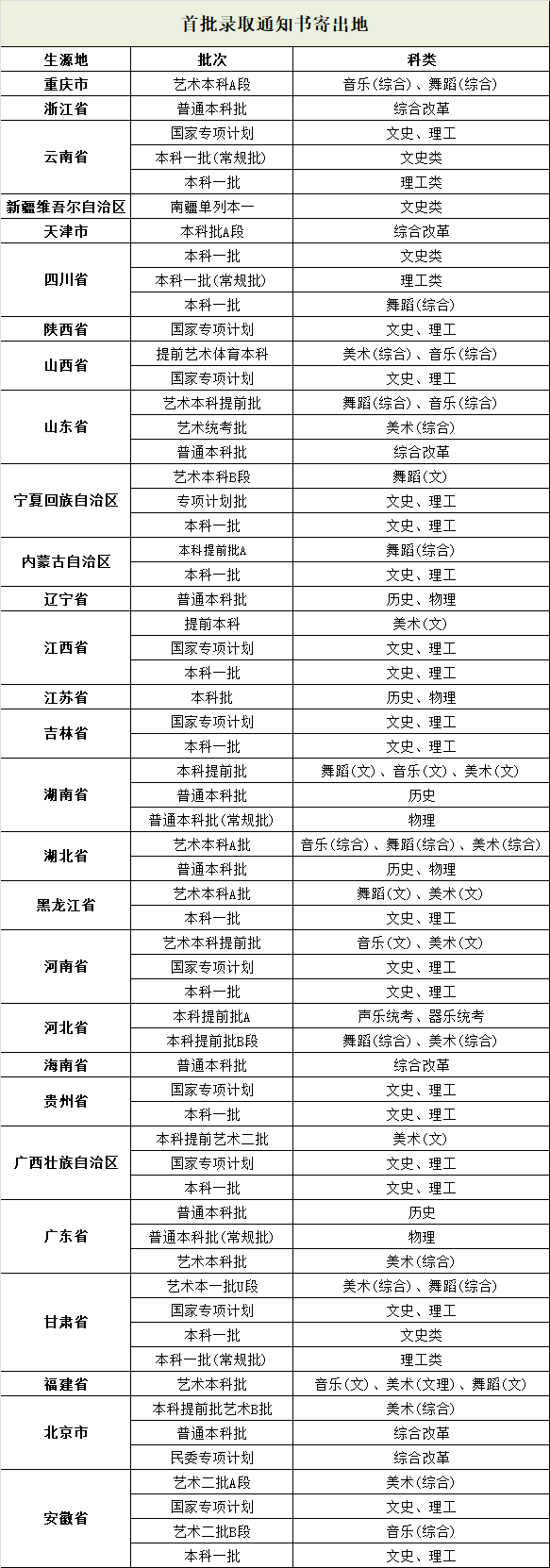 首批录取通知书寄出地: