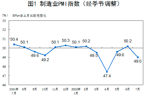 7月PMI为49.0%,降至收缩区间 图片来源:国家统计局