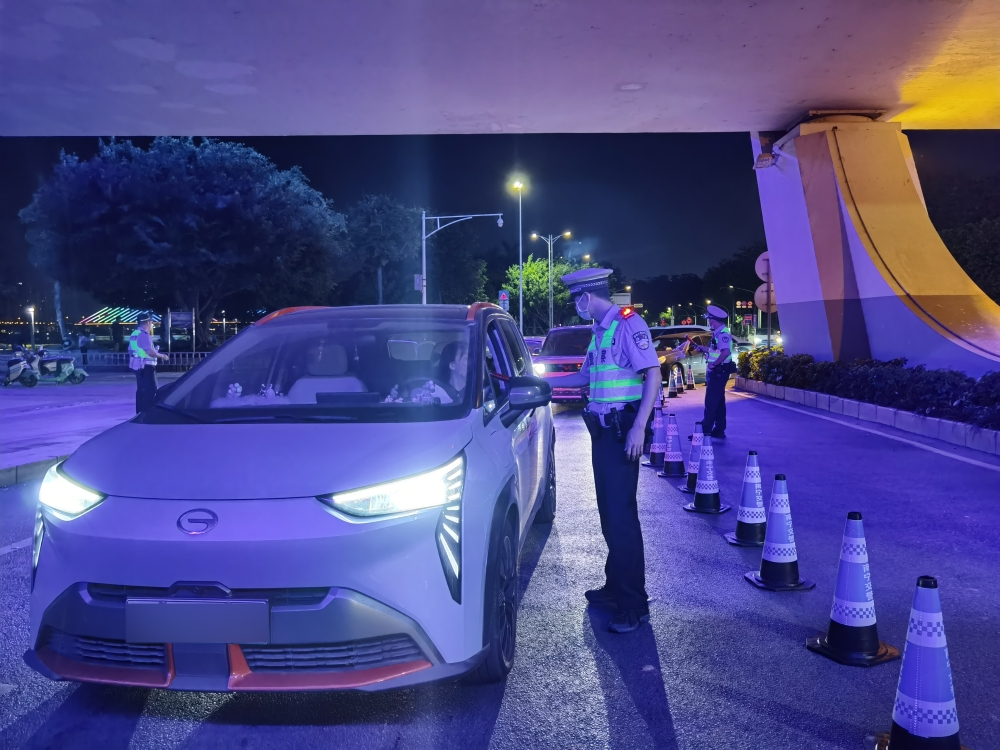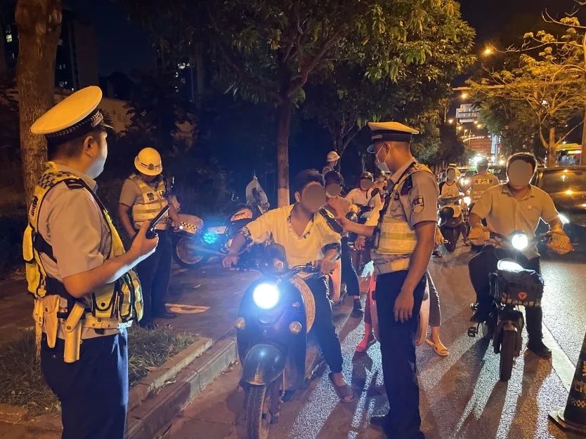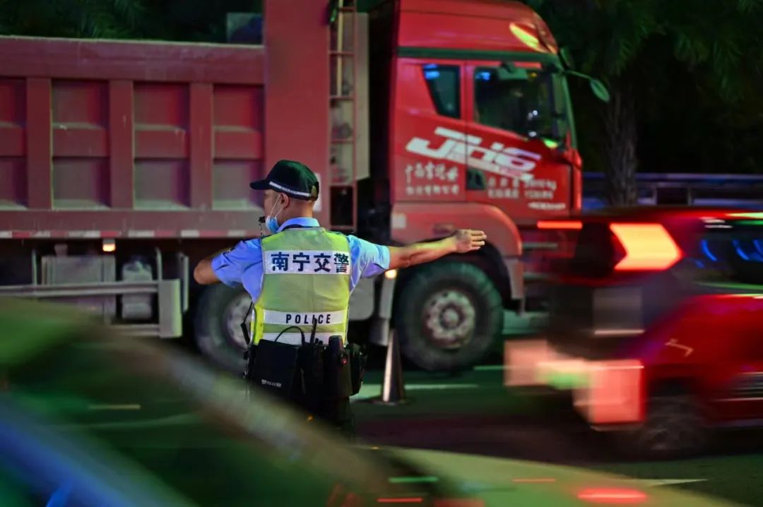 7月28日晚,南宁交警全员上岗,组织开展集中统一行动,采取流动巡查、设点查缉与随机抽查相结合等方式,在检查酒驾醉驾的同时,同步查处超员、不系安全带、不戴安全头盔等显性交通违法行为,结合实际查处毒驾、涉牌涉证、疲劳驾驶、非法改装车辆“炸街”扰民等违法行为,加强路面管控,消除安全隐患。