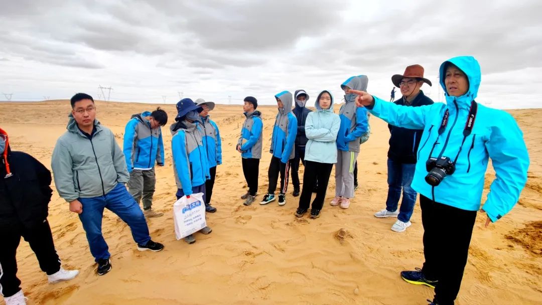 7月16日,科考队在察尔汗盐湖北侧纵向沙垄野外教学