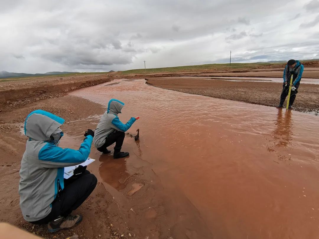 位于长江源地区的沱沱河,发源于青藏高原的唐古拉山脉格拉丹东雪山,位于三江源国家级自然保护区。7月18日,科考队长周建伟带队走访沱沱河水文站,并为沱沱河水文站实践基地揭牌。水文与生态组对沱沱河干流和支流的流速、流量及水化学指标进行了测量,并采取了水样和土样。