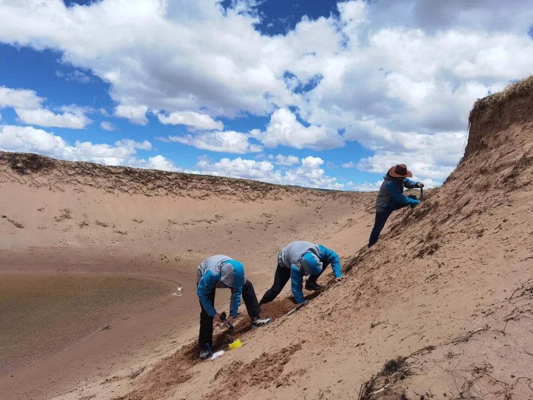 地理组对长江源附近露头良好的沙丘进行了取样,根据观察和最近30年遥感影像的分析,长江源附近的沙漠化是日益严重的。