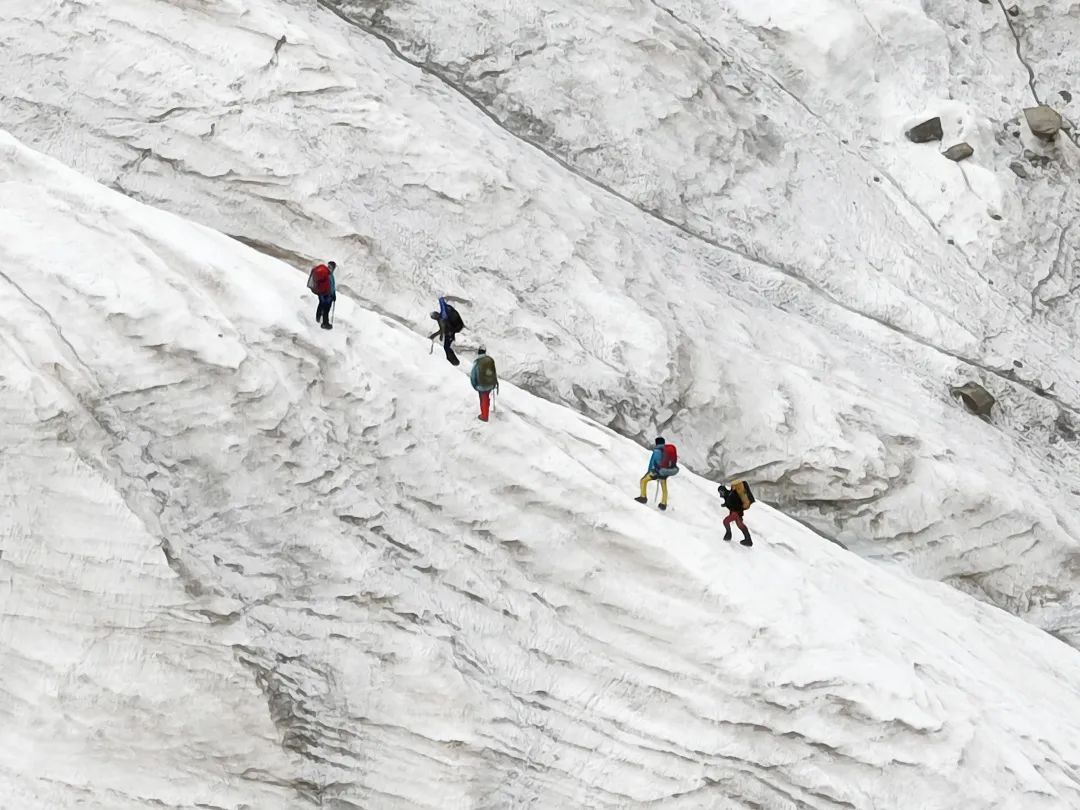 在本次勘测任务中,科考队克服了极端高寒环境,在27日清晨发起登山测绘。陈刚、李龙敏抵达测绘目的地后,采用两年前珠峰测高方式,设置GNSS接收机,并依托北斗系统和珠峰地区以及外围的GNSS监测网联机同步观测,获得精准数值,给格拉丹东雪山主峰测量“身高”。