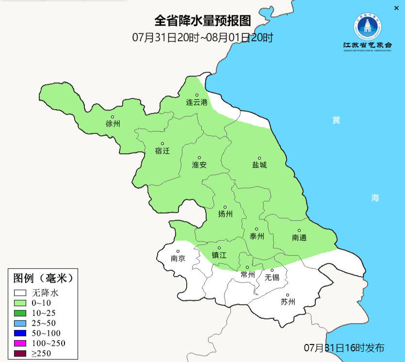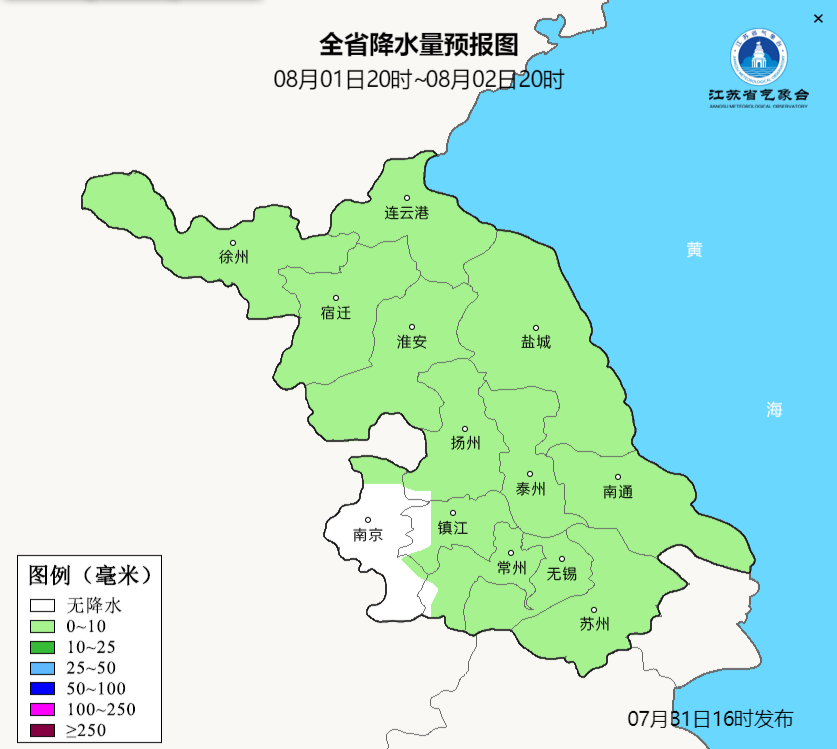 最后是8月1日江苏各市具体天气预报