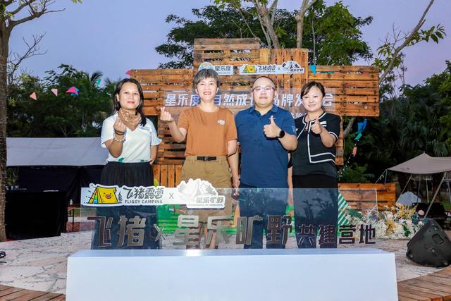 飞猪度假业务部粤港澳日韩总监凌骅,阿里巴巴集团战略发展部总监付媛媛与大横琴星乐度公司总经理彭贵华、副总经理蔡湘鄂一同为“飞猪×星乐旷野共建营地”揭牌,标志着飞猪旅行与星乐度·露营小镇的合作正式开启,这也是飞猪在珠海的首个联名营地。