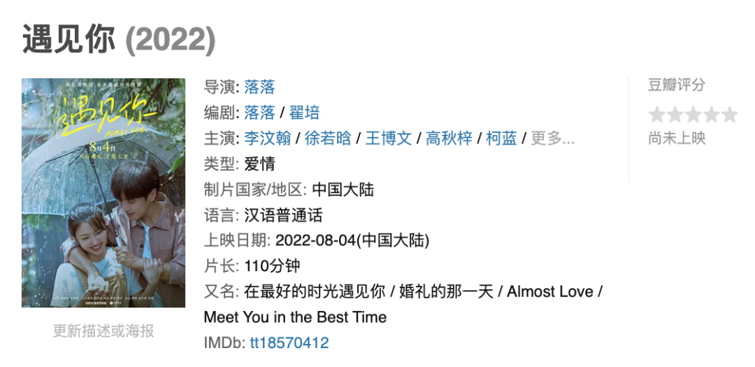 你看,这片名就非常七夕档了,也同样是青春与爱情这两大话题衍生的影片。