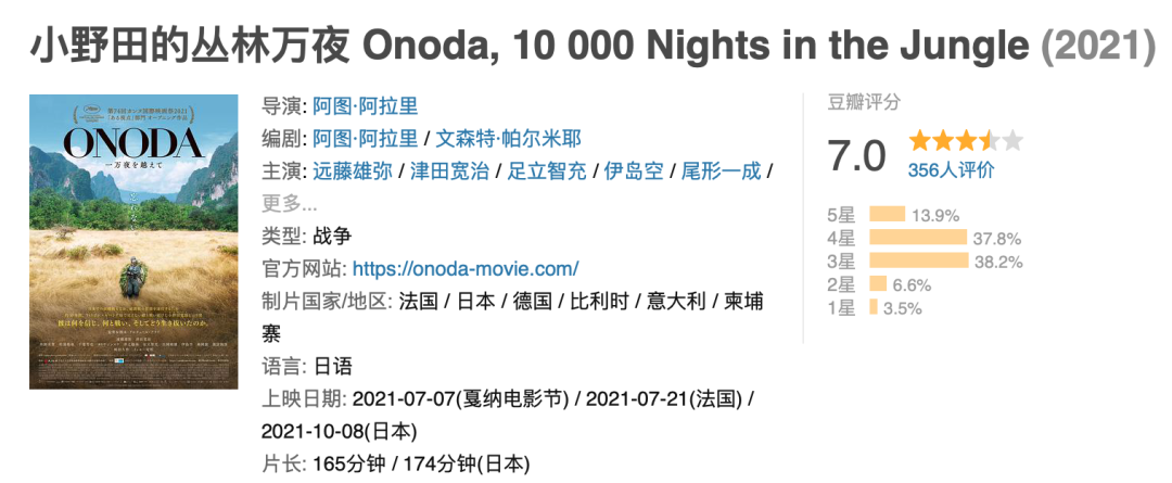 这是去年戛纳电影节一种关注单元的参赛片,也提名了之后的凯撒奖,并拿到了最佳原创剧本奖,是一个法国导演拍的日本兵的故事。