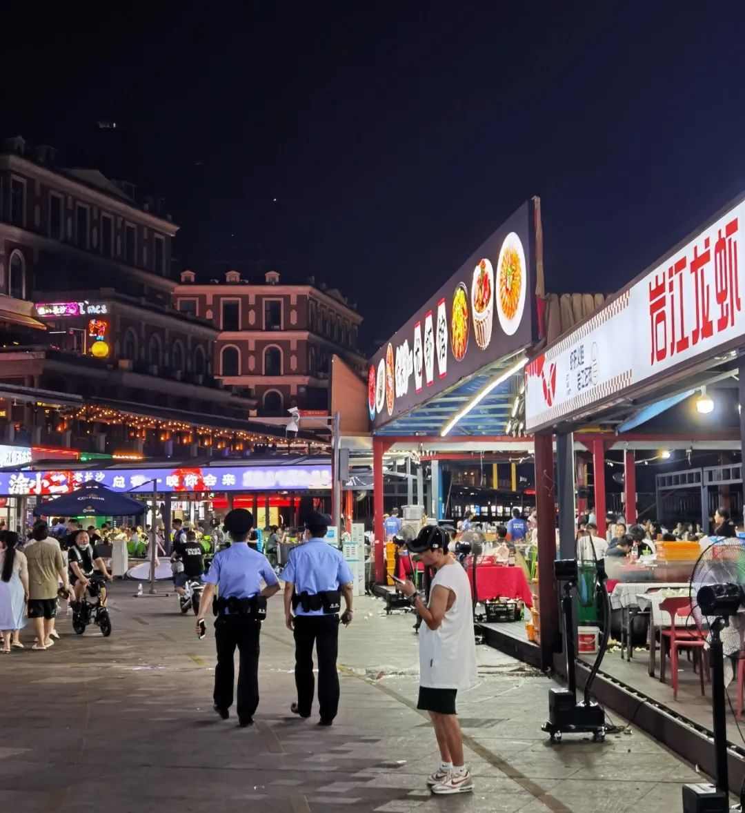 岳麓区渔人码头风情街夜市火爆,公安机关采取“1+2+3+N”防控措施,即设置“1条步巡线路”,安装“2个一键式报警装置”,设置“3个巡逻执勤点”,组织“N名治安志愿者”参与群防群治,做到全方位、无死角防护。