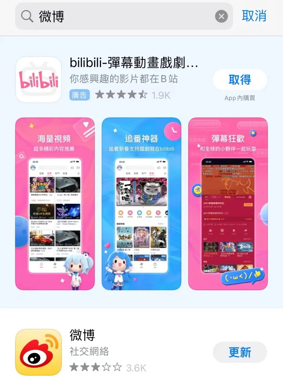 又例如,果子想下载微博的时候,最先看到的竟然是 B 站。