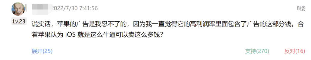 有老哥表示,iPhone 的高利润率里,相比起售价较低的安卓手机,本就已经包含了“理应不看广告”的权利。