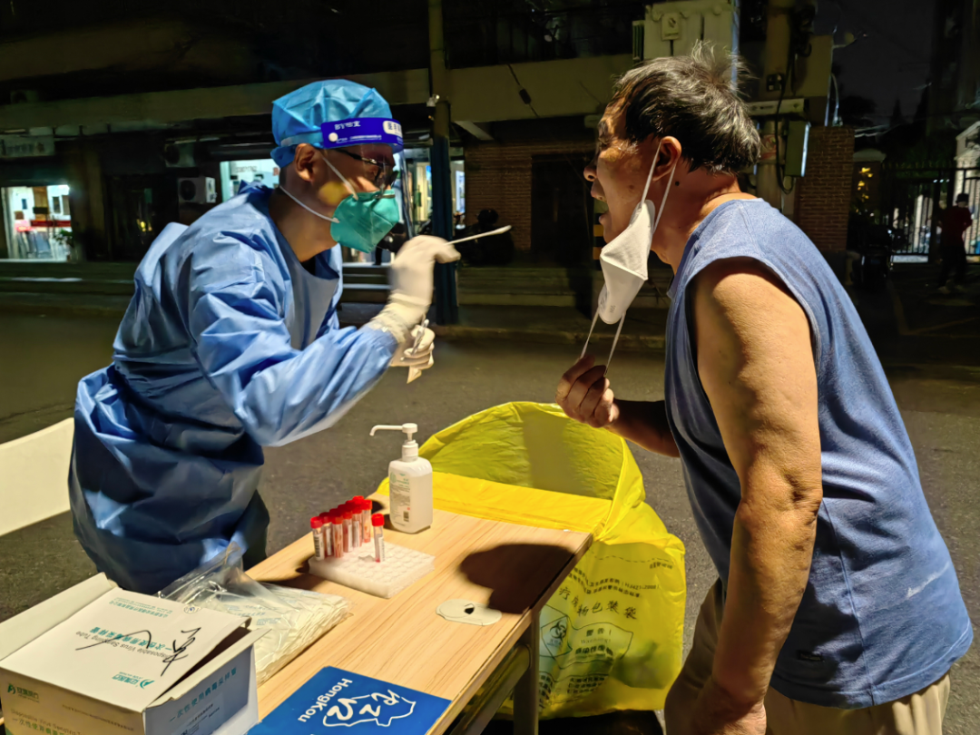 “穿着‘小蓝’采样舒服多了,再也没有汗流浃背的不适感了,是我做核酸采样员最舒爽的几天。”在四川北路街道邢长居民区,身穿蓝色隔离服的姚桂刚和同事们提前完成了社区大筛工作。收工时,他告诉记者,现在做采样终于不用穿大白了,舒爽了许多。