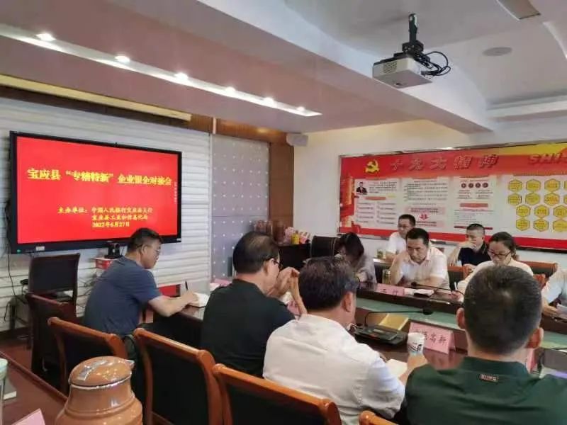 为贯彻落实国务院促进中小企业发展工作领导小组办公室印发《为“专精特新”中小企业办实事清单》,缓解中小企业融资难题,促进“专精特新”中小企业平稳健康发展,近日,宝应县工信局建立“专精特新”中小企业名单推送共享机制,围绕“专精特新”中小企业需求,联合人民银行召开“宝应县‘专精特新’企业融资需求银政企对接会”。工行、农行、中行、建行、江苏银行、南京银行、宝应农商行、银河证券等8家金融机构和扬州腾飞电缆电器材料有限公司、扬州市管件厂等11家专精特新“小巨人”企业和培育企业参加活动。