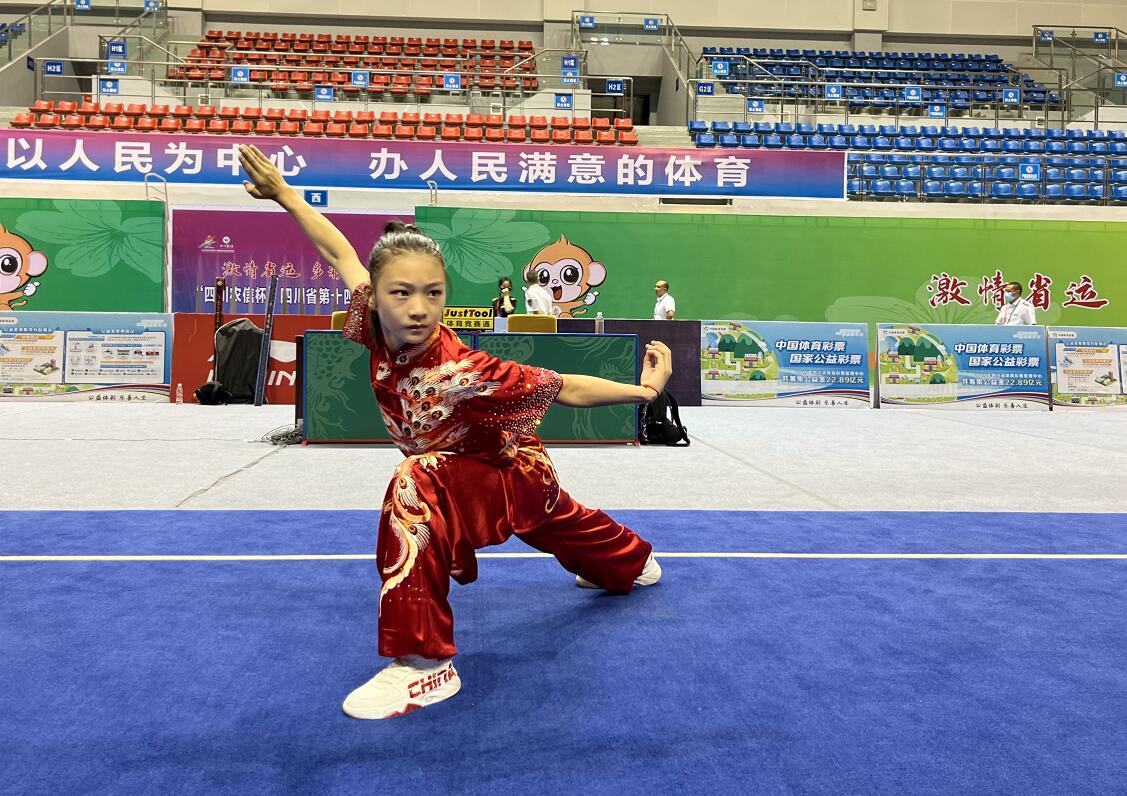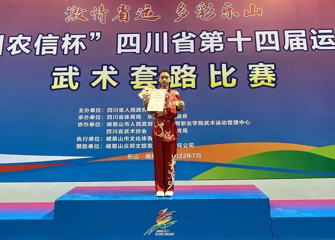 在昨(7月31日)晚结束的四川省第十四届运动会武术套路比赛女子乙组长拳、刀术、棍术全能比赛中,代表绵阳参赛的江油籍运动员邓汝诗发挥出色,勇夺“全能冠军”的头衔。
