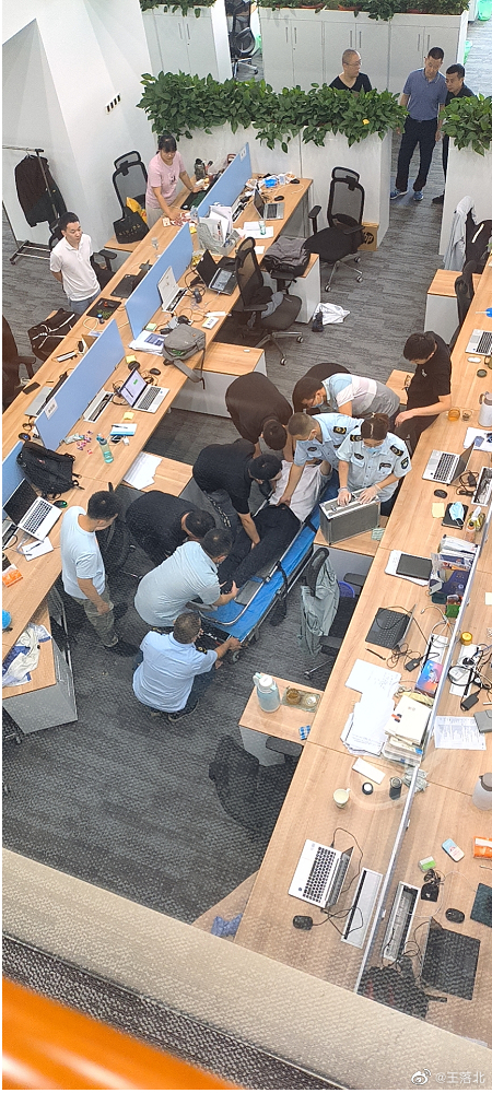8月1日下午12点52分,一名为“王落北”的微博网友在网上发文“群里看到的,据说浪潮倒了一个,真的假的?希望人平安”,在该网友上传的图片中显示,在一办公室内有一人倒地,众人围观抢救。此外,在该网友发布的一群聊截图中有人表示“24小时连续值班”“9点19分左右开始躺地上大声大喊救命”“还不到10分钟就昏迷了”。该聊天截图内还有网友表示自己就在旁边,现场已经有120到达进行抢救。