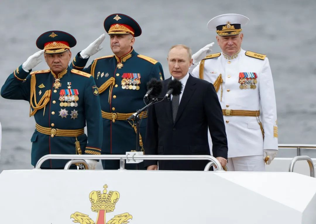 普京出席俄罗斯海军节阅兵活动并发表讲话。图源:路透社