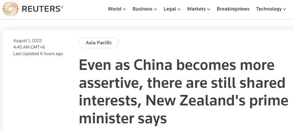 新西兰总理:即使中国更强势追求利益,也应基于共同利益与中国合作