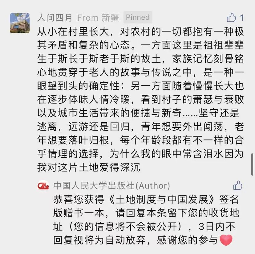 恭喜读者『 人间四月 』