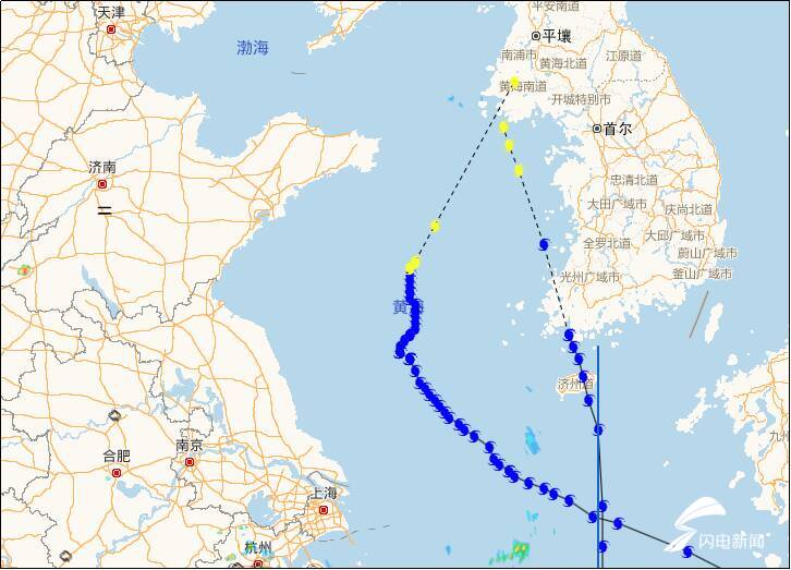 黄海中部和北部海域出现东北风,近海观测站阵风达6~8级。