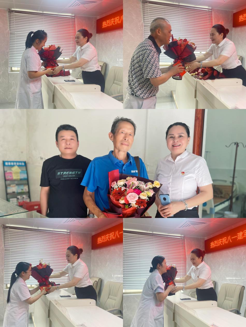 在第95个“八一”建军节前夕,迎风桥镇卫生院开展慰问本院职工退伍军人及军属活动。为6位退伍军人及军属送上慰问金和鲜花。