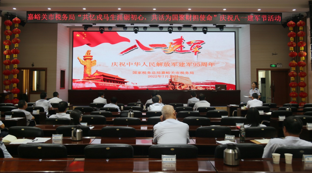 嘉峪关市税务局开展纪念“八一建军节”95周年“五个一”系列主题活动,暨“唱一首军歌、听一堂党课、学一位楷模、树一个榜样、参加一场竞赛”,共忆戎马生涯砺初心,共话为国聚财担使命。(张成亮)