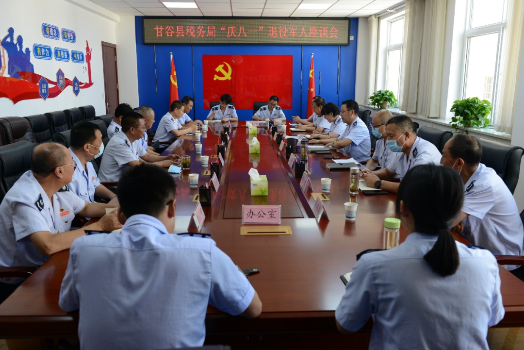 甘谷县税务局组织开展“庆八一”退役军人座谈会。11名退役军人深情回顾了自己的军旅生涯,并为税务工作发展建言献策。(张浩)