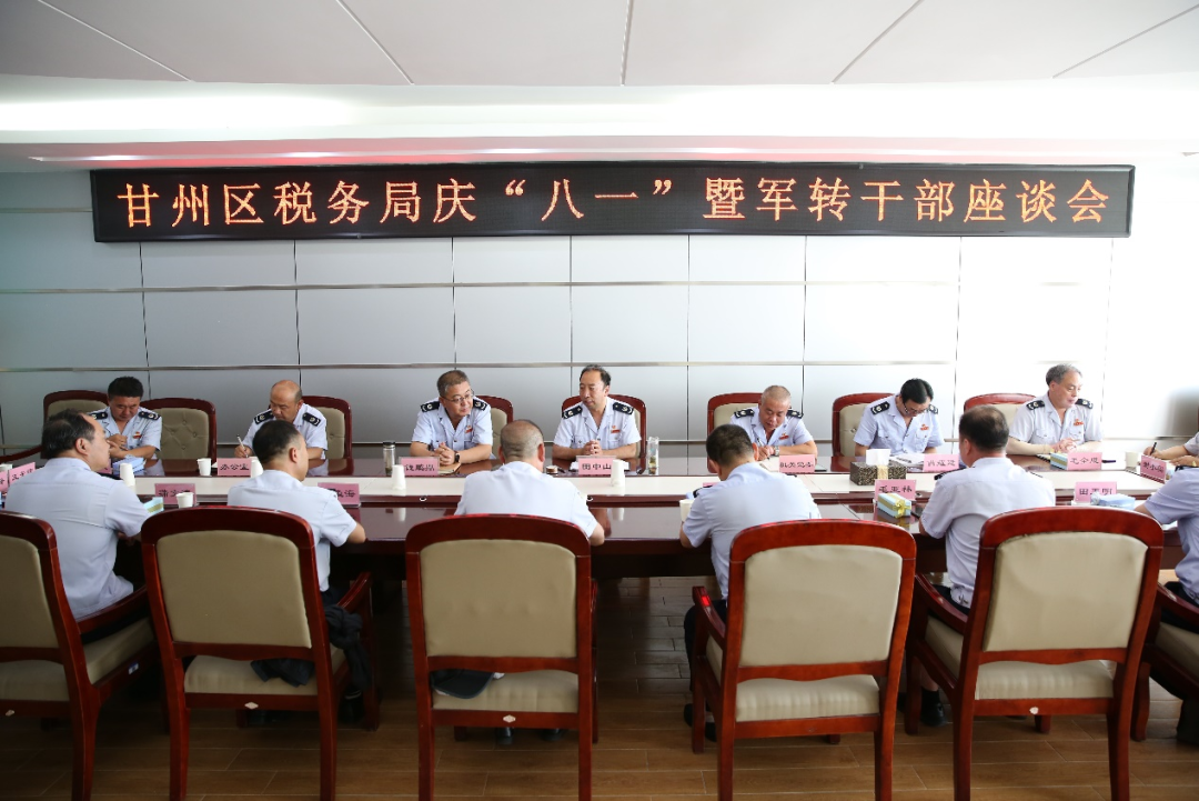 张掖市甘州区税务局召开庆“八一”暨军转干部座谈会。(周一清)
