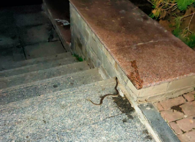 7 月 31 日,大连市甘井子区红凌路叠翠骏景小区,有居民差点踩到一条蛇,据蛇岛老铁山国家级自然保护区管理局科研人员王小平辨认,这是短尾蛇,也是大连陆地毒性最强、最常见的一种毒蛇。王小平表示,尽管是毒蛇,居民也不用过于紧张和担心,因为蛇一般不会主动攻击人,遇见了不要挑逗或刺激它,报警由专业人员处理。