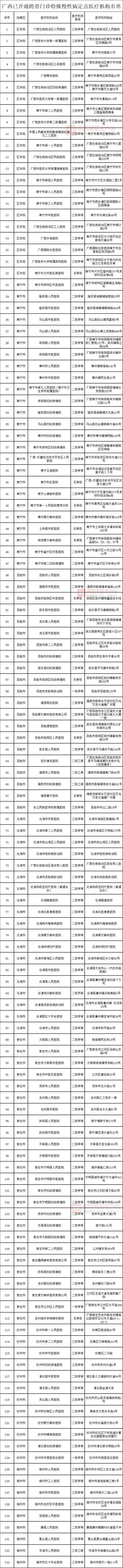 在广西,截至7月29日,已有包括自治区人民医院、广西医科大学第一附属医院、百色市人民医院等在内的133家医院,开通了门诊特殊慢性病相关治疗费用跨省直接结算服务。门诊特殊慢性病相关治疗费用跨省直接结算,须参保人参保所在地、参保人就医地及就医医疗机构,均已开通该项服务。参保人员可以通过国家医保服务平台网站、“国家医保服务平台”App等渠道查询相关信息。