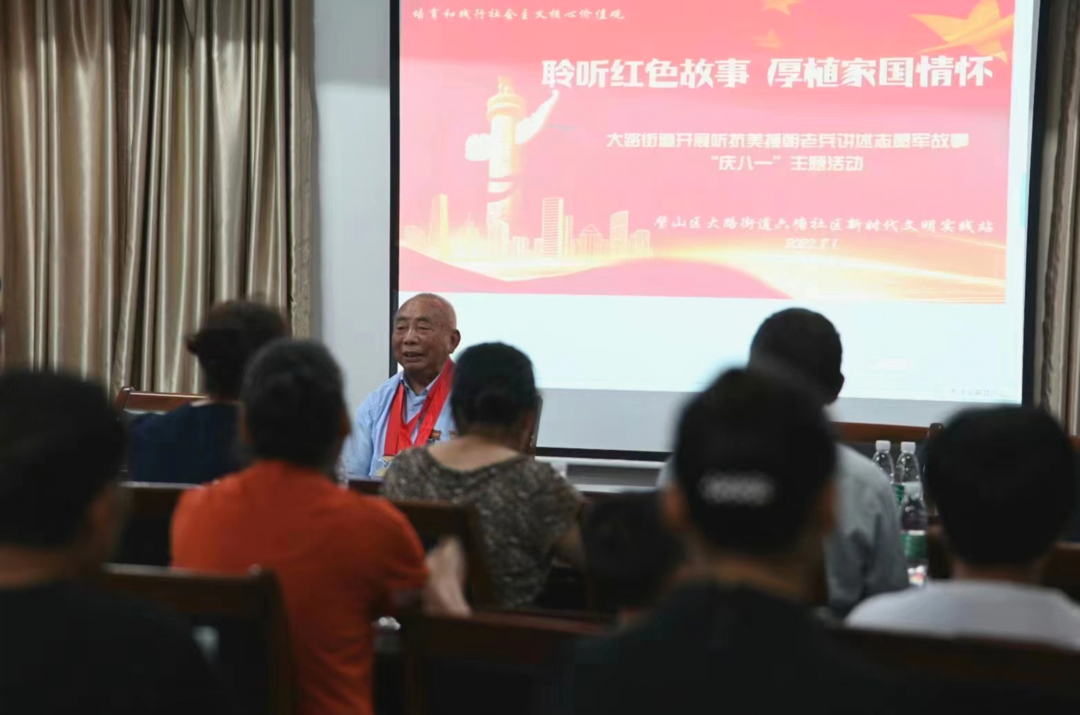 八一建军节当日,92岁的抗美援朝老战士牟济生来到重庆市璧山区大路街道六塘社区,为社区工作人员和居民讲述自己参加抗美援朝战争、保家卫国的经历。