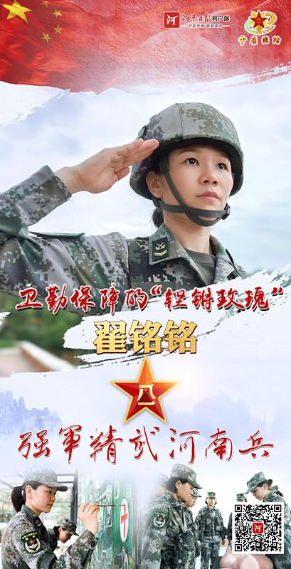 2012年大学将毕业时,翟铭铭在网上看到了征兵信息,她毅然选择投笔从戎,成为卫生连的一名战士。