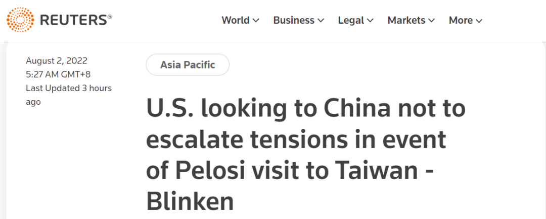 北京时间2日凌晨,美国国务卿布林肯紧急表态,竟呼吁中方如果佩洛西访台别加剧紧张……