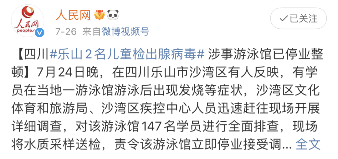 腺病毒在泳池爆发,和其强传染性有直接关系。