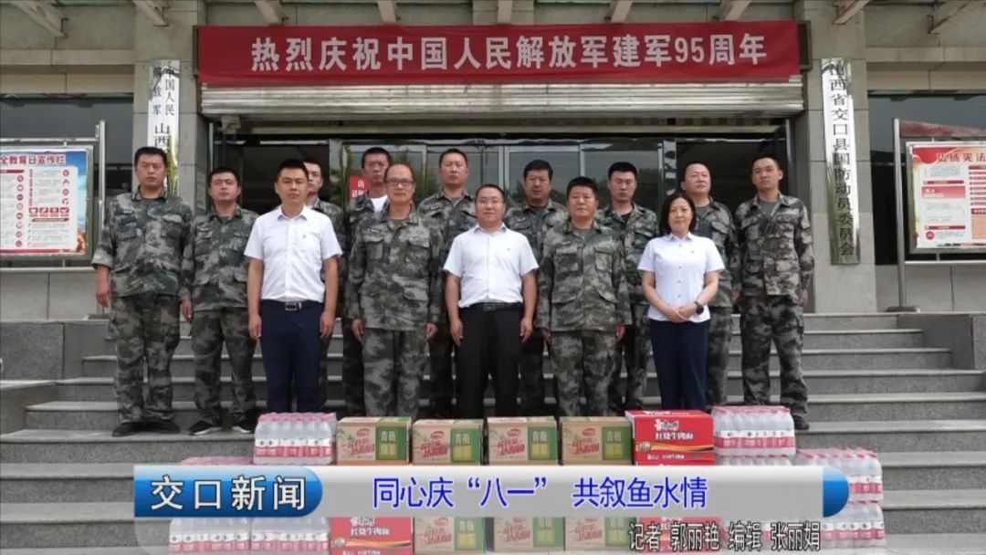 在“八一”建军节之际, 康城镇党委政府、县退役军人事务局、中国工商银行股份有限公司交口支行、中国邮政储蓄银行交口县支行负责人前往县人武部开展慰问。县委常委、县人武部部长张建军、县人武部政委丁睿参加慰问活动。