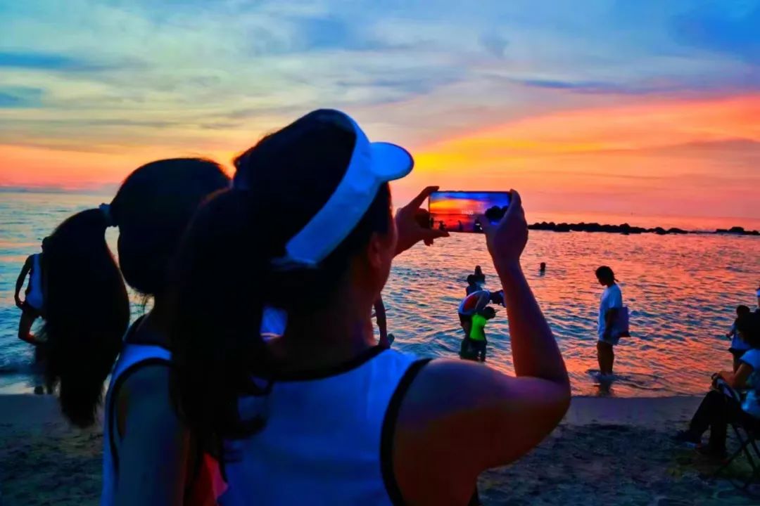 黄昏时分,当峨蔓海岸的火山石、沙滩、碧海、蓝天均被夕阳渲染成赤红与金橙色时,云展云舒间,夕阳在大海中渐渐隐去。在参与活动过程中,每个人都用手机、相机打卡最美海岸沙滩落日,通过图片直播平台下载五彩湾、下浦海湾风光等照片,转发朋友圈获得点赞数最多的前60名参赛者还将获得举办方赠送的纪念品一份。