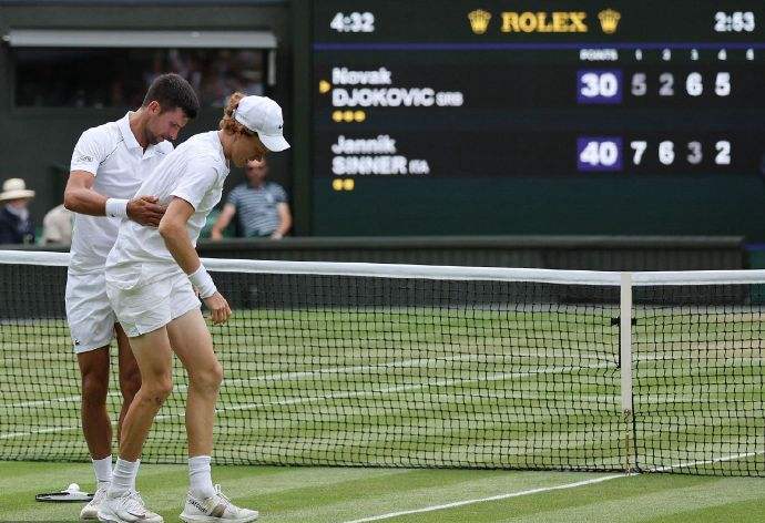 当时温网第四轮辛纳和阿尔卡拉斯隔网相对时, 这场00后球员之间的青春对决,吸引了很多人的关注。不过由于阿尔卡拉斯是温网夺冠热门人选之一,使得很多人都并不看好辛纳晋级。没想到一直在上半年没什么太大亮眼表现的辛纳,在先失一盘的情况下,竟然连下三盘逆转成功,彻底粉碎了阿尔卡拉斯的温网夺冠梦想。
