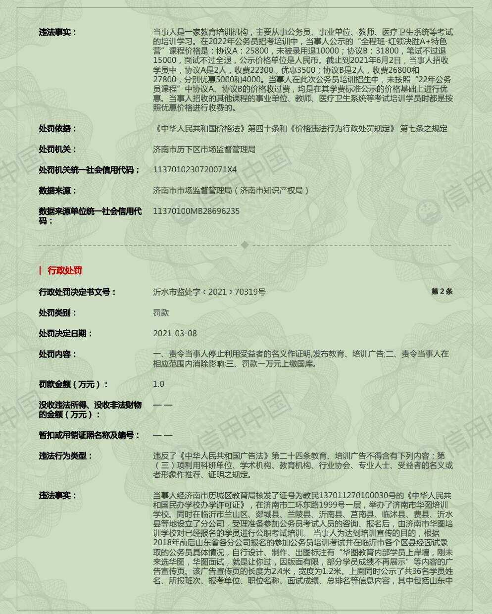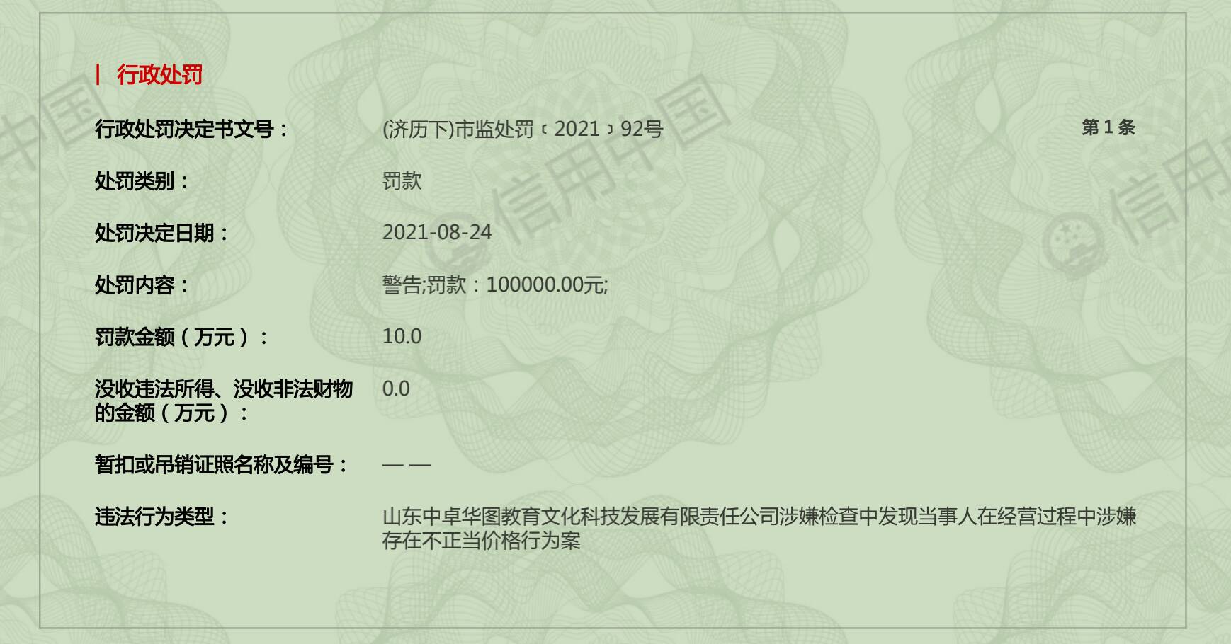 齐鲁网·闪电新闻8月2日讯 记者从山东公安执法办案公开查询系统获悉,山东中卓华图教育文化科技发展有限责任公司因存在非法获取个人信息的违法行为被处罚。