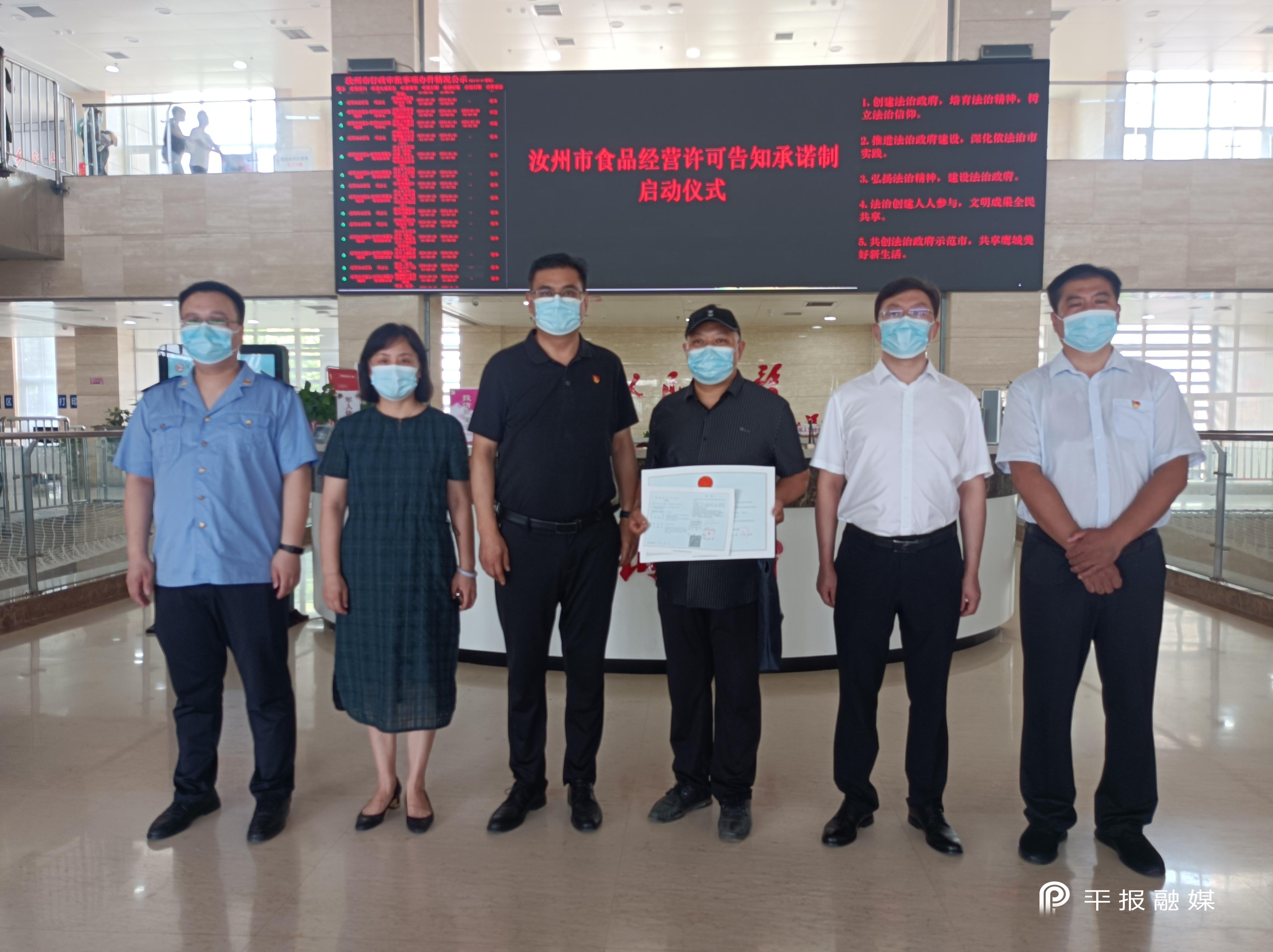 为深入推进“放管服”改革,进一步优化营商环境,持续破解“准入不准营”难题,根据国务院“证照分离”全覆盖改革中将更多涉企许可实行告知承诺制的改革精神,汝州市在全省率先探索推行食品流通行业食品许可告知承诺制改革,万天顺成为我省实行散装食品经营许可告知承诺制改革办理《食品经营许可证》的第一人。